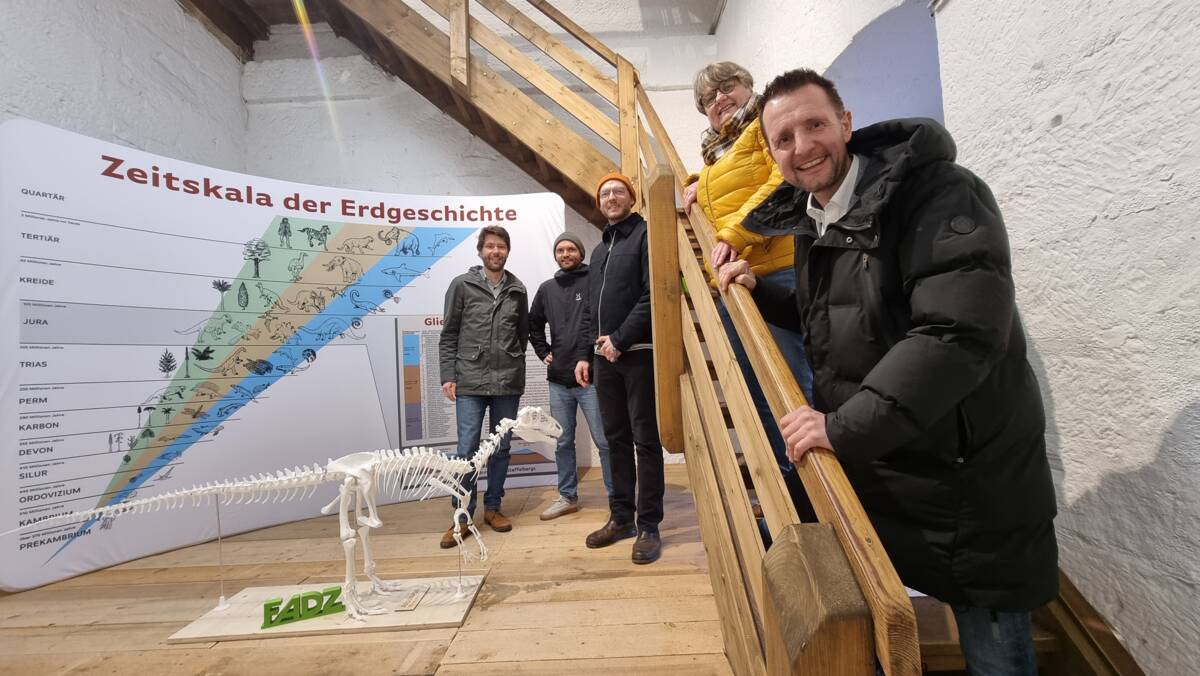 Das rund 2,70 Meter lange und 1,30 Meter hohe Modell wurde im 3D-Druckverfahren vom Zweckverband Forschungs- und Anwendungszentrum für Digitale Zukunftstechnologien (FADZ) gefertigt und ergänzt die bestehende Sammlung um einen eindrucksvollen Blickfang. In den vergangenen Wochen wurde die Ausstellung zudem museumspädagogisch überarbeitet. Neue Informationstafeln vermitteln die Erdgeschichte der Region nun anschaulicher und verständlicher.